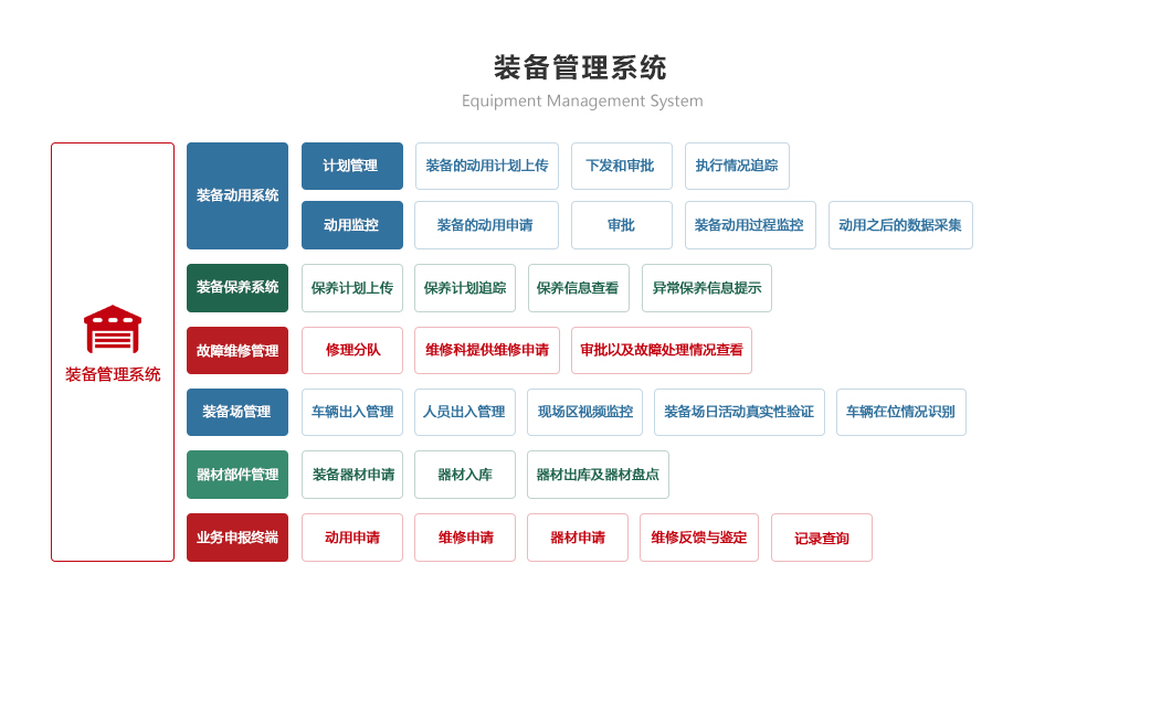 部隊管理系統 機關辦公系統 軍事教育系統 智慧政工系統 軍事訓練系統 后勤保障系統 智慧安防系統 裝備管理系統